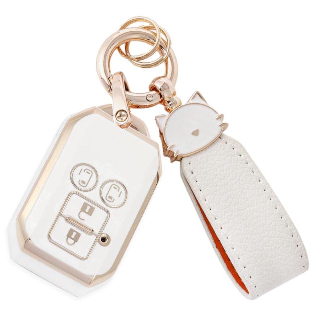 ZANEKO キーケース適合スズキ新型スペーシアキーカバー スペーシアカスタム ソリオ フレアワゴン スマートキーケース 猫 (ホワイト)