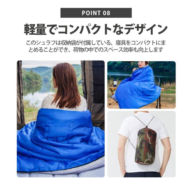 【水曜日まで!10%クーポン配布中】 寝袋 シュラフ 車中泊 グッズ 封筒型 コンパクト 春 夏 秋 キャンプ用品 旅行 夏用 冬用 軽量 洗える アウトドア フード付