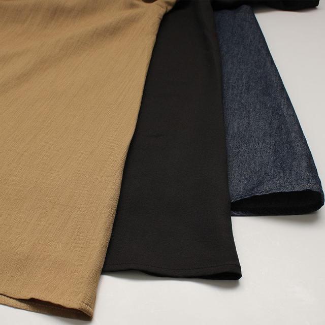 レーヨン混のスラブ素材と薄手デニムのアソート展開。