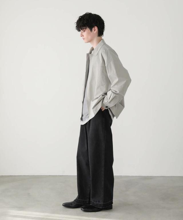 フロントを開けて、また閉めてスタンドネックとして2wayのスタイルを楽しめます。インナーには、オーバーサイズのカットソーや薄手のニットなどがおすすめ。ゆったりとした作りのため、オーバーサイズのインナーもごわつくことなく着用できます。