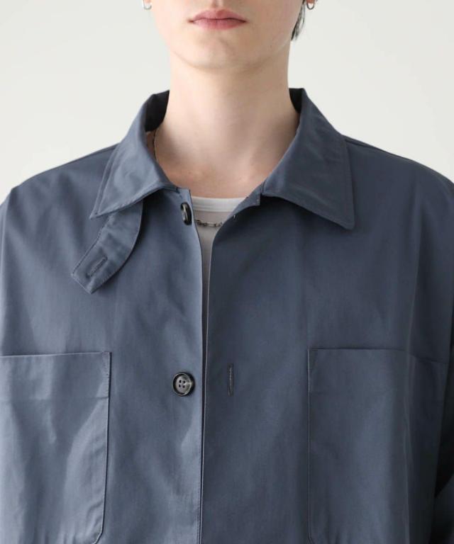 季節の変わり目にさっと羽織れるシャツジャケット。ハリのあるシャツ生地を使用しており、着用時にきれいなシルエットをキープします。首元は、襟を立ててチンストラップで止めることで、スタンドネックとしても着こなせる2way仕様。フロントには大きめの胸ポケットが2つあり、シンプルなデザインのアクセントに。また、裾はドローコード付きなので、絞ることでシルエットの変化を楽しめます。さらっとした肌触りと軽やかな着心地で、1枚あると着回しに活躍するアイテムです。