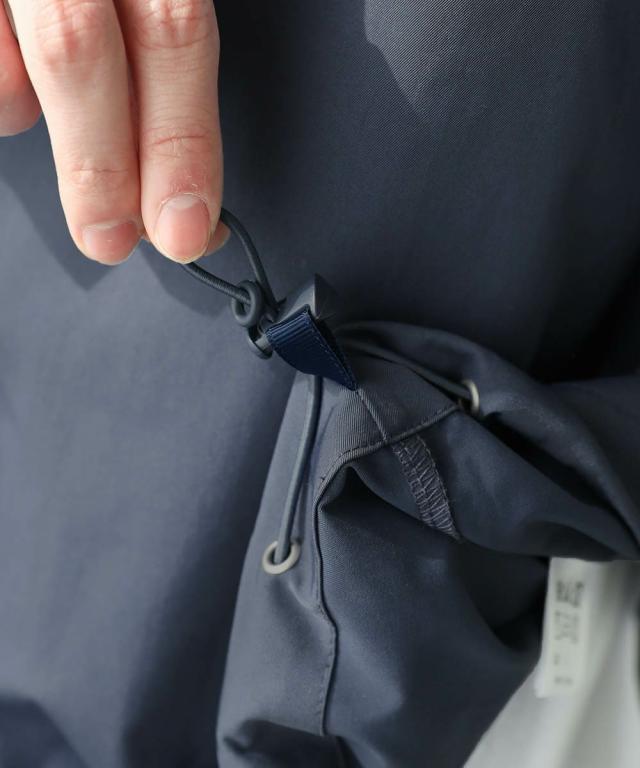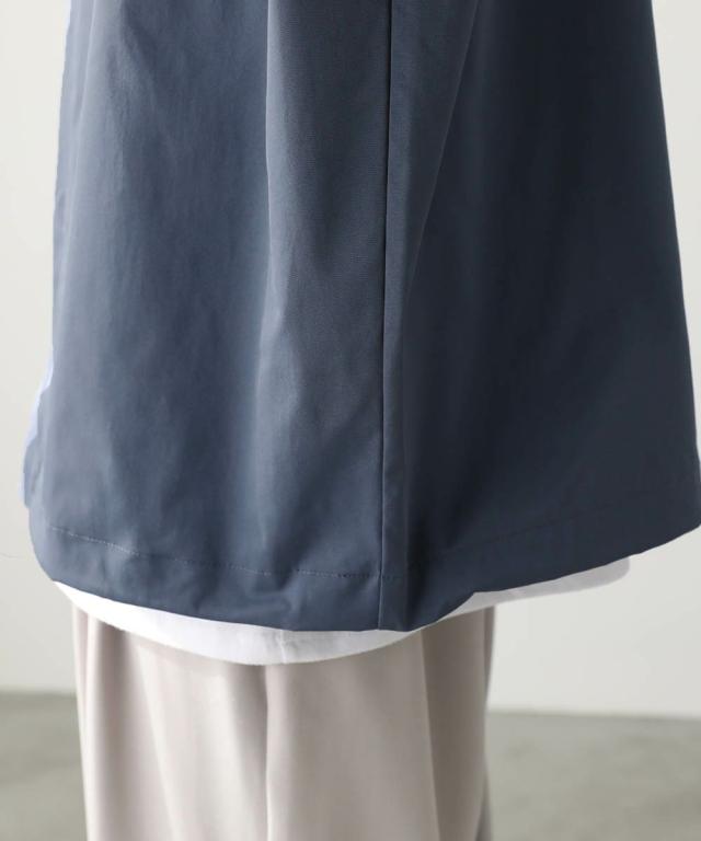 ハリのあるポリエステル生地を使用しています。シャツ生地を使用しているので、通常のジャケットよりも軽やかな着心地です。マットな質感が大人っぽく、またさらっとした肌触りで快適に着用できます。
