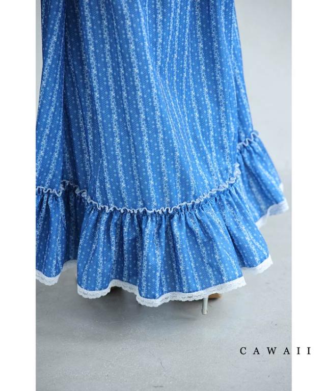w50348nc 新作 新着 再入荷 CAWAII FRENCHPAVE フレンチパヴェ エレガント ベーシック カジュアル 可愛い かわいい カワイイ おしゃれ オシャレ お洒落 個性 個性的 定番 ベーシック 大人かわいい 大人可愛い 上品 女性らしい デザイン スタンダード ナチュラル きれいめ キレイめ シンプル フェミニン レディース レディースファッション 大人 ママ ミセス 30代 40代 50代 60代 裾フリル レース柄 ライン ロングスカート ウエストゴム ゴム 総ゴム M L 2L LL XL 3L LLL XXL フリーサイズ フリー 低身長 高身長 小柄 大柄 細身 標準サイズ 大きめシルエット 大きい 大きめ ビッグシルエット ぽっちゃり F サイズ自由 春服 春物 夏 夏服 夏物 伸びる 伸縮性 ティアード フレア カントリー風 ブルー 青 体型カバー お尻隠し 太もも隠し お腹隠し 日常着 普段着 日常使い