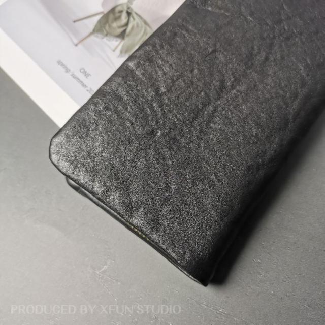 この財布は、必要に応じてその形を拡張できる独自のデザインを採用しています。これにより、中身が多くても無理なく閉じることができ、出し入れもスムーズに行えます。快適性と機能性を両立させた設計です。