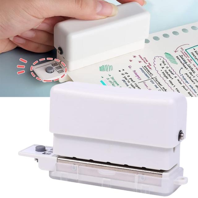 【A4/B5/A5ペーパーに対応可能】穴あけパンチ1本だけでA4(30穴)/A5(20穴)/B5(26穴)3種類の紙に対応できます。 サイズ:9.3*5*2.8cm 重さ:約70g 穴数:6穴 穴径:5.5mm 奥行き:7mm 穴間隔:9.5mm 穿孔枚数:2枚 使いやすくて、オフ ィスでの使用に大人気。この穴あけパンチを使うと、誰でもきれいな穴をあけられます。