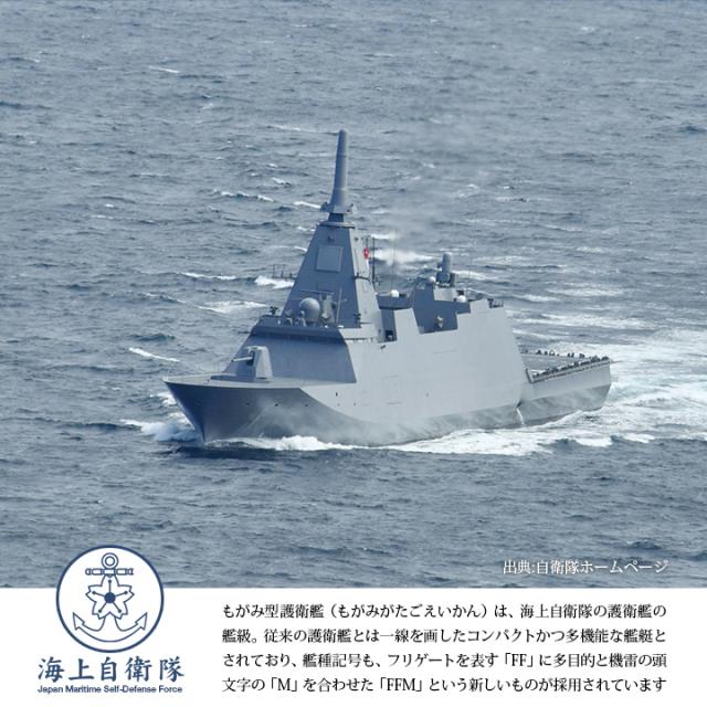 本商品は、海上自衛隊(JMSDF)が運用する、もがみ型多機能護衛艦の1番艦にあたる「もがみ/FFM-1」 を題材としたオリジナル商品です。