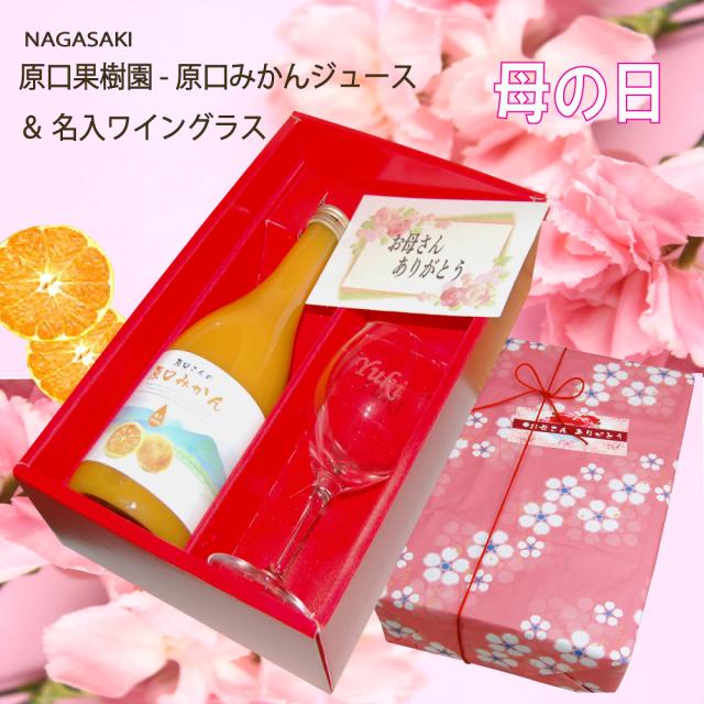 母の日 プレゼント ギフト プレミアム原口みかん100%ジュース・名入彫刻ワイングラスセット