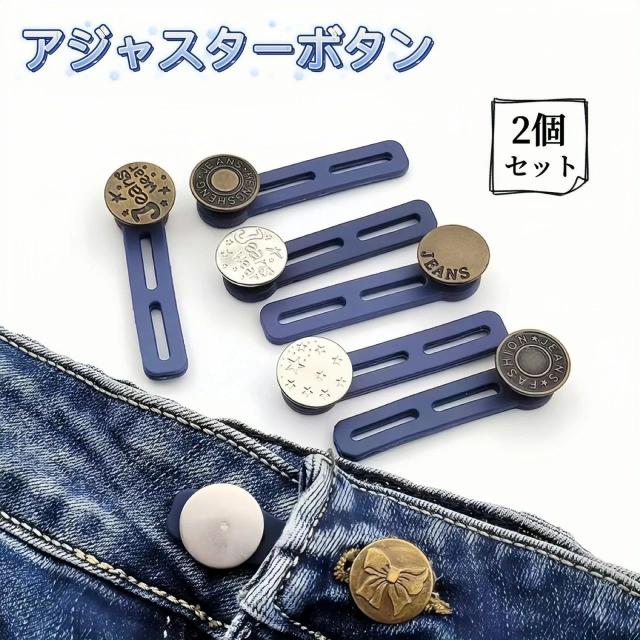 アジャスターボタン 2個セット ロングバージョン ウエスト調整 ウエストサイズ伸ばす ジーンズ伸びる パーツ伸ばし ジーパン Gパン ジーンズ ウエストデニム お直し きつい 制服 妊婦服 フォーマル 調整 延長 拡張