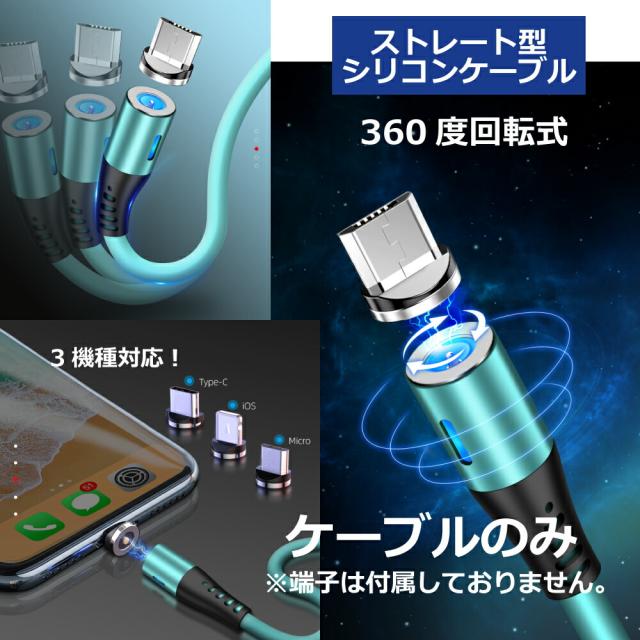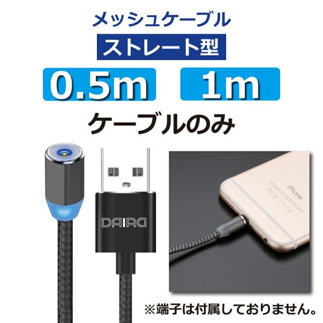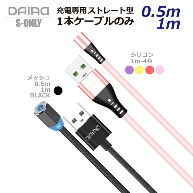 【 ケーブルのみ 1ピン】DAIAD マグネット 充電ケーブルのみ I字 360度回転 ストレートタイプ I型 着脱 磁気USB LEDライト マルチ対応 Micro USB Type-C iPhone15 iPad Lightning アンドロイド タブレット スマホ 磁石 USBケーブル シリコン ナイロン 1m 充電専用 1PIN