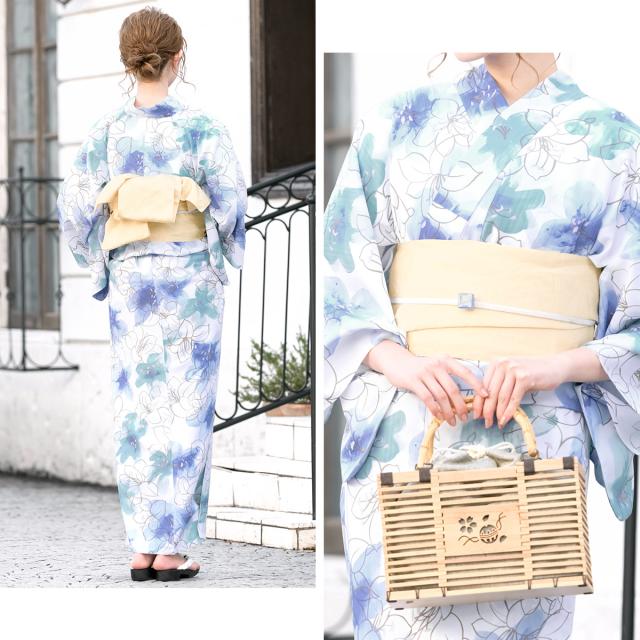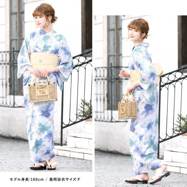 浴衣 レディース セット レトロ 浴衣セット 大人 2026 3点セット 白 水色 青 ライトブルー 百合 ユリ 花 モダン 変わり織り 夏 女性用 送料無料