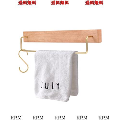 Sakulaya タオル掛け タオルバー タオルハンガー 天然木 真鍮 取付簡単 キッチン タオル掛け 洗面所 浴室 お風呂 収納 S字フック付き ブ