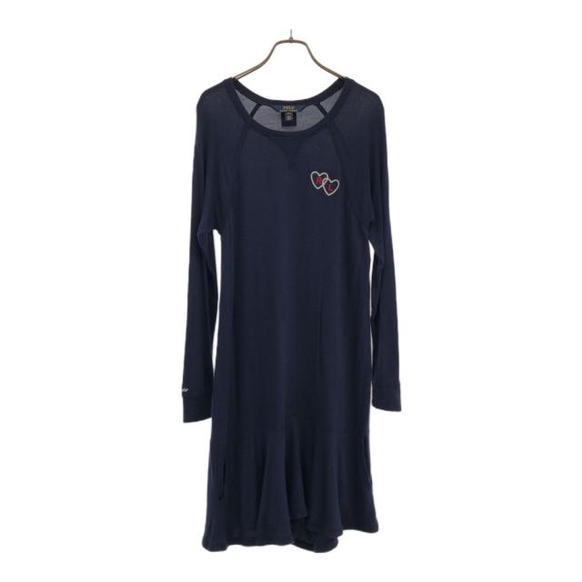 ポロラルフローレン ハート 長袖 フレア ワンピース L ネイビー POLO RALPH LAUREN ロゴ刺繍 レディース