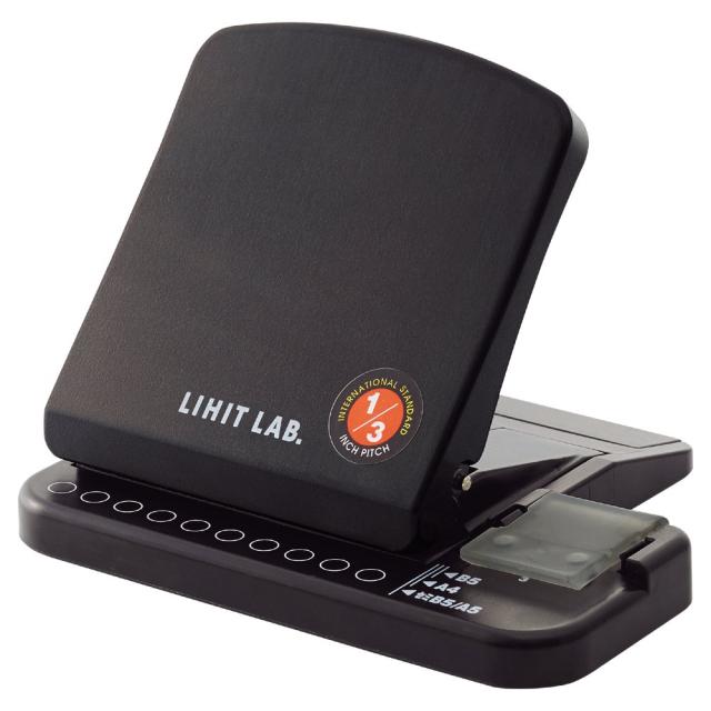 ダブルリングノートピッチ、ツイストリング・ノート用のパンチ。卓上タイプ新登場 *国際標準1/3インチ(8.47mm)ピッチ 丸穴 *最大穿孔枚数:コピー用紙5枚(64g/m2) (JIS規格ピッチA4・30穴、B5・26穴、A5・20穴には対応していません。)
