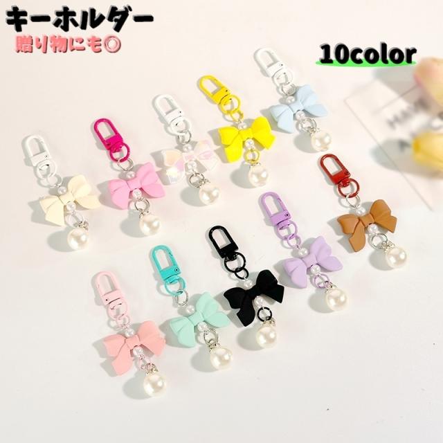 キーホルダー AirPodsケースチャーム バックチャーム レディース 女性 女の子 リボン フェイクパール かわいい プレゼン