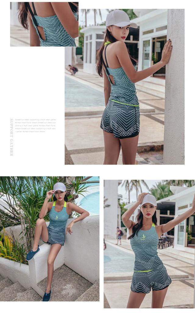 フィットネス水着 レディース セパレート 体型カバー スポーティー水着 セパレート ショートパンツ 水陸両用 スポーツ風 湯浴み着 温泉 水着 ワンピース レディース 体型カバー パッド付き 脱着可