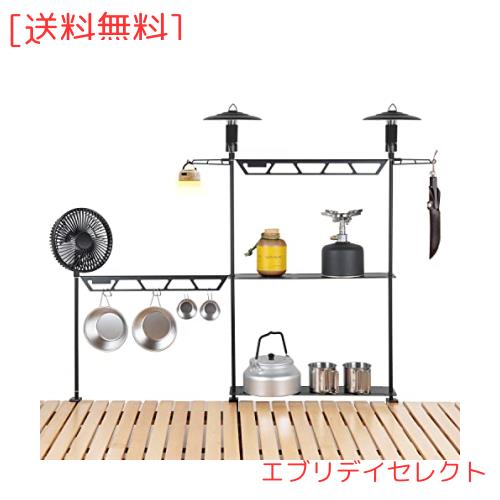 【組み立て簡単・多機能】ネジや工具不要、繋ぎ合わせて、テーブルなどに挟んで簡単に組み立てることが出来ます。ハンギングラックには1/4接続ネジを搭載し、市販上の1/4ネジインターフェースに適合し、ランタンなどのものを取り付けることができます。86cm幅があるので、調理器具の乾燥、ランタン、ウトドアランプ、ピクニック用品、食器、タオル、小物、雑貨を掛けるのに便利です。