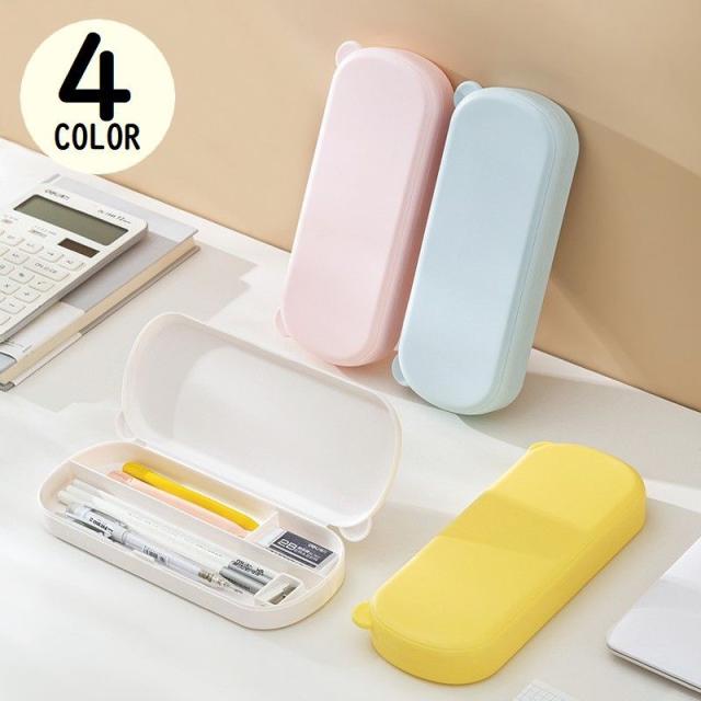 箱型ペンケース 筆箱 筆入れ 小物入れ 片開きボックス型 文房具 文具 コスメ収納 大容量 軽量 防水 仕切り 無地 コンパクト