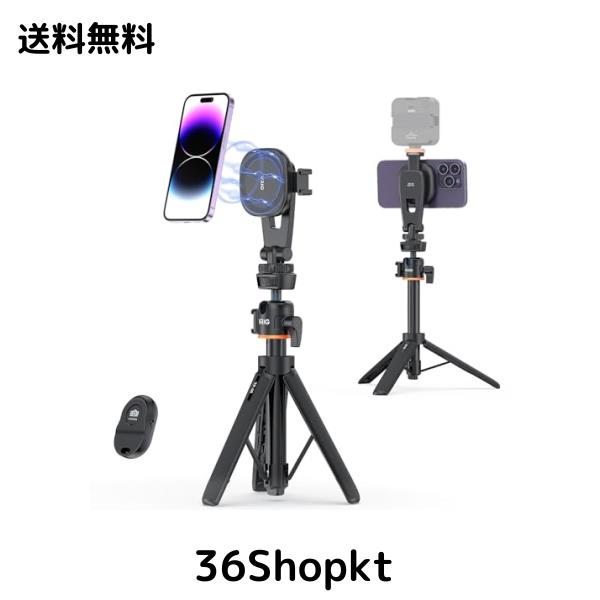 VRIG スマホホルダー三脚 MagSafe用 三脚マウントマグネット式マウント 三脚 スマホ カメラ三脚 4段伸縮 22-55cm スマホスタンド 三脚 片