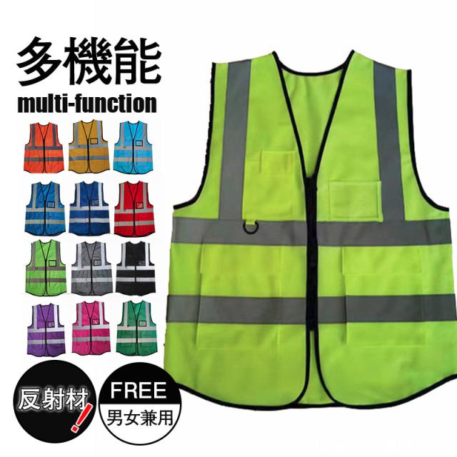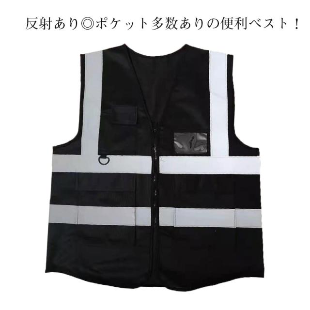 送料無料 反射ベスト 安全ベスト メッシュ 通気性 作業ベスト ブラック マルチベスト マルチポケット 作業ウエア 夜間 作業服