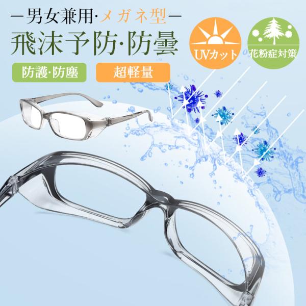 【キーワード】メガネ型 眼鏡型 ウイルス 花粉対策 防曇 軽量 飛沫 感染 防止 男女兼用 両面防曇 接客業 新生活