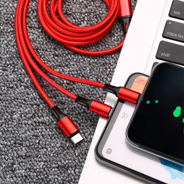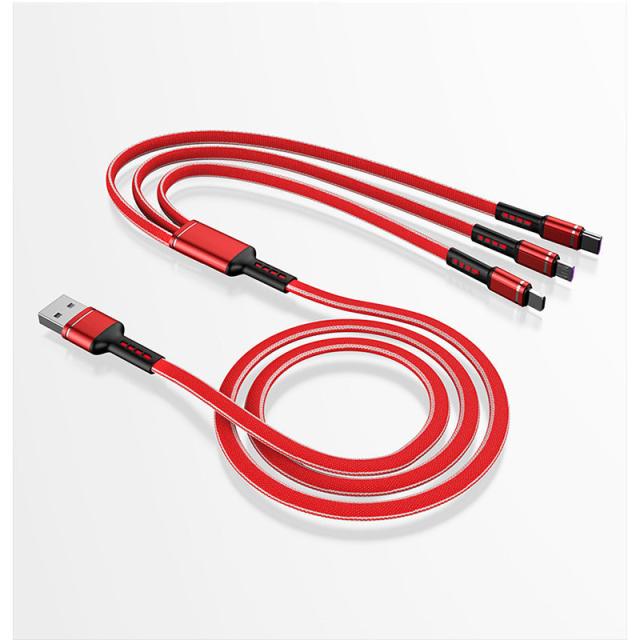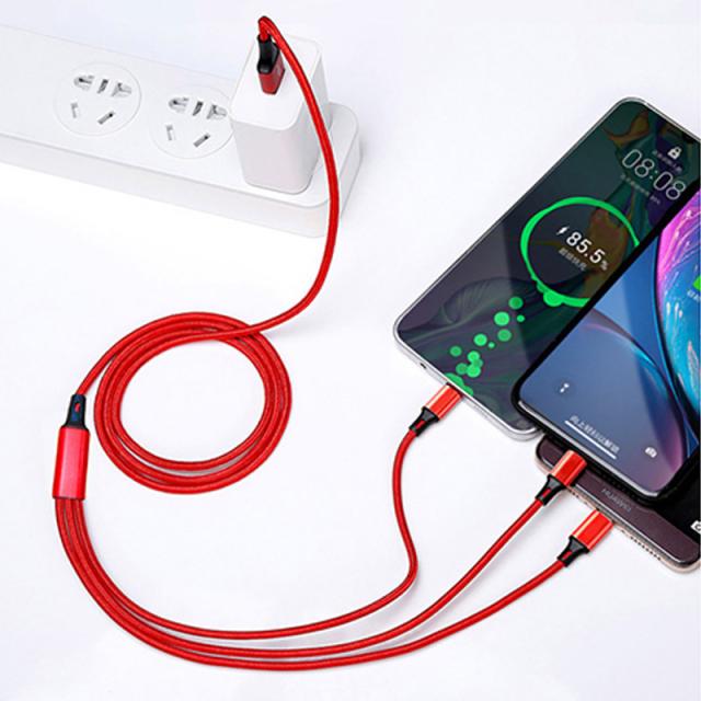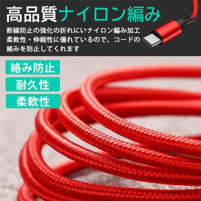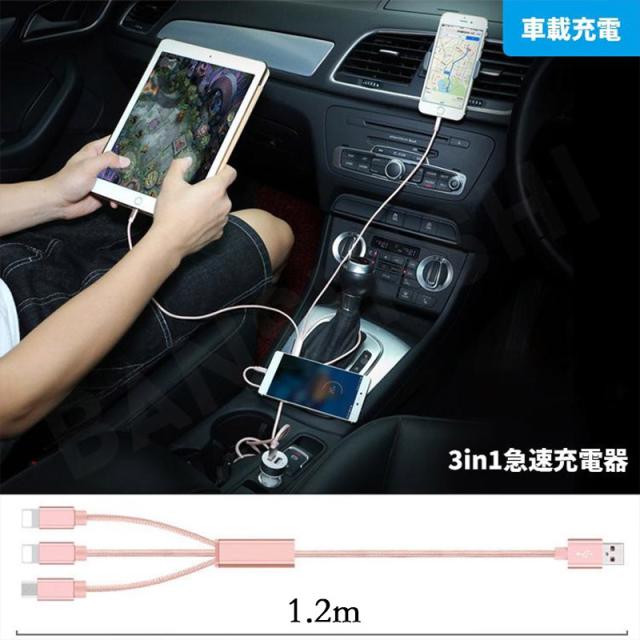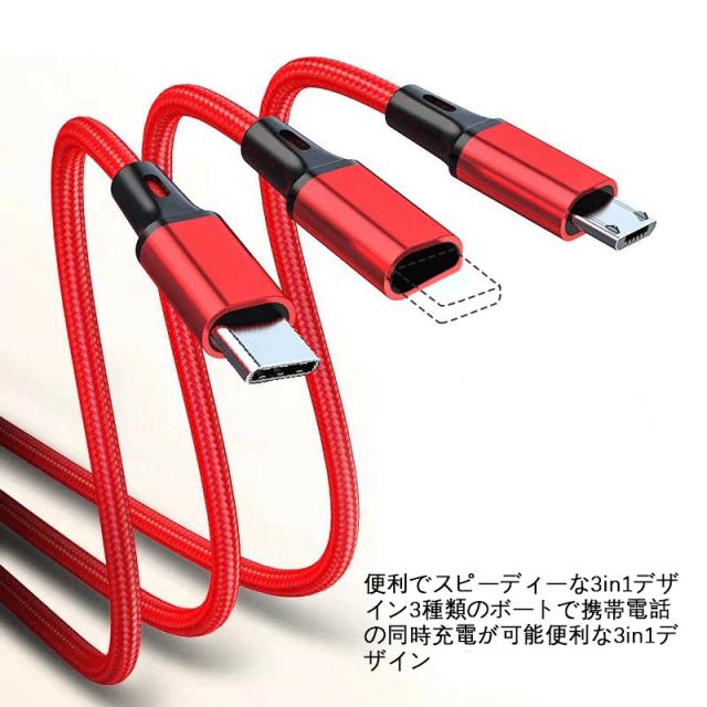 国内即日発送 データ ケーブル 3in1 急速充電 Android type-c iPhone 耐久性 DC充電 ナイロン 3つのコネクター 充電器
