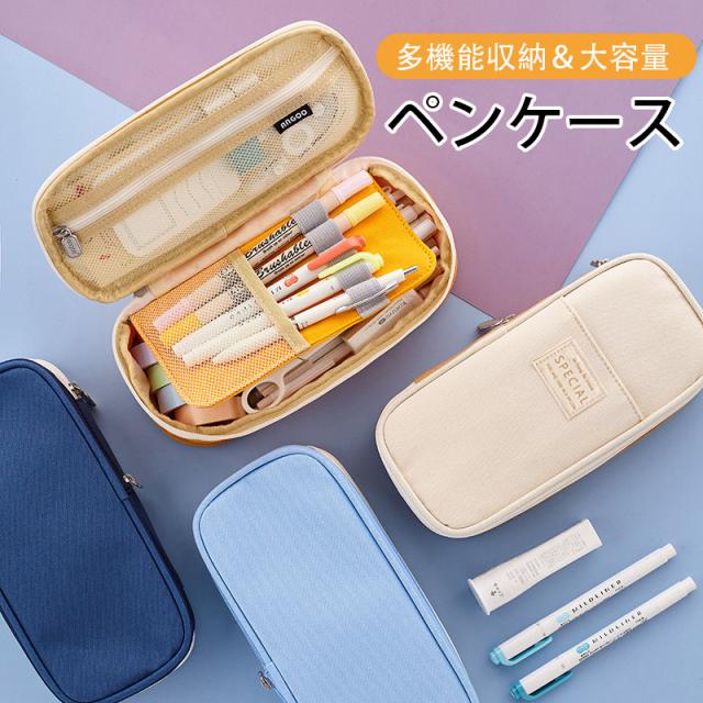 一部即納!ペンケース 筆箱 小学校 女子 男子 大容量 おしゃれ 韓国 中学 シンプル 仕切り 一年生 3年 中小学生 高校生 大学生 子供 帆布 マチ付き
