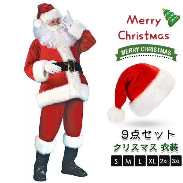 【2点で10%OFF】サンタクロース 衣装 男性 サンタ 9点セット コスプレ メンズ 大人 サンタコス コスチューム クリスマス 豪華9点セット 大きいサイズ 本格