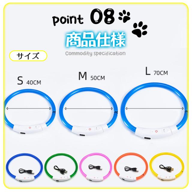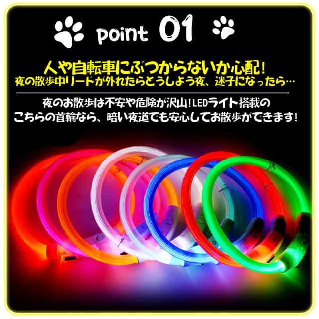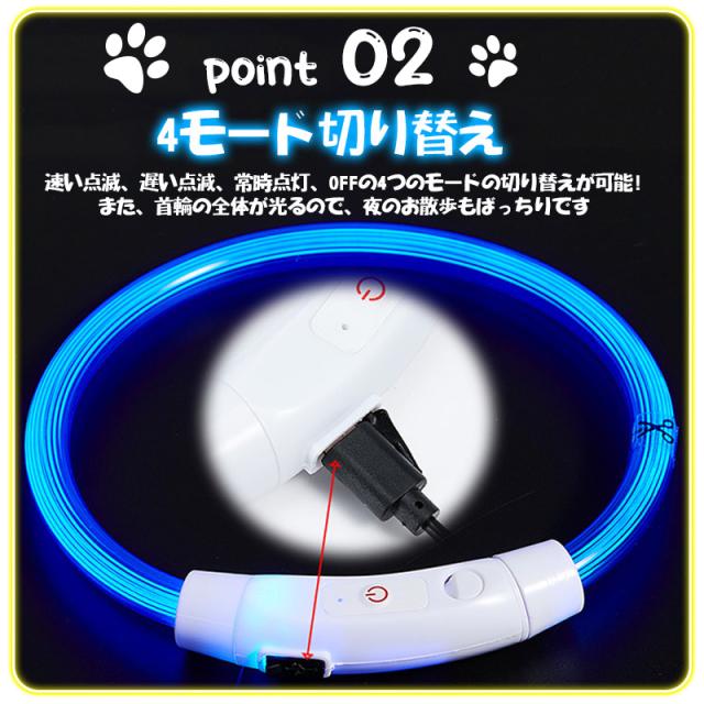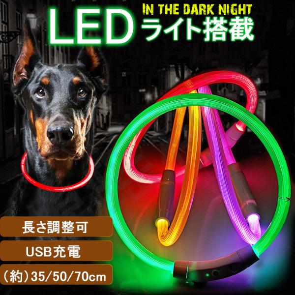 【2点で10%OFF!】犬用首輪 光る LEDライト 夜 散歩 長さ調整可 常時点灯 点滅 USB充電 ペット 35cm 50cm 70cm 小型犬 中型犬 大型犬 安全 CE認証