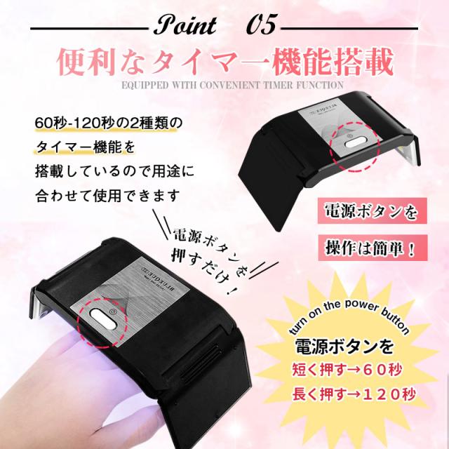 UV&LEDふたつの光源が備わっているので、ほぼ全てのジェルネイルが硬化できます。レジンにも使用可能!