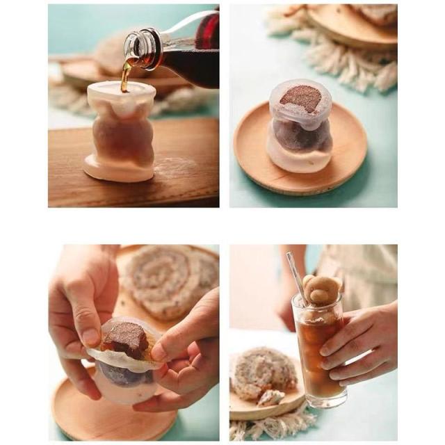 可愛いクマの形のシリコンモールドです。水、ジュースなどを注ぐだけでクマの氷ができます。