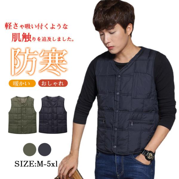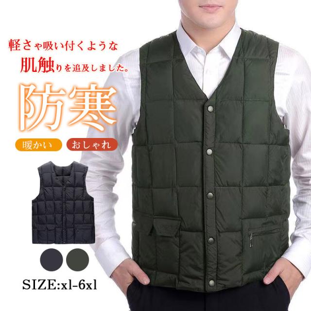 ダウンベスト Vネック インナーダウンベスト MENS メンズ 無地 おしゃれ スポーツベストアウトドア サイドポケット ダウンジレ 中綿 防寒ベストメンズ