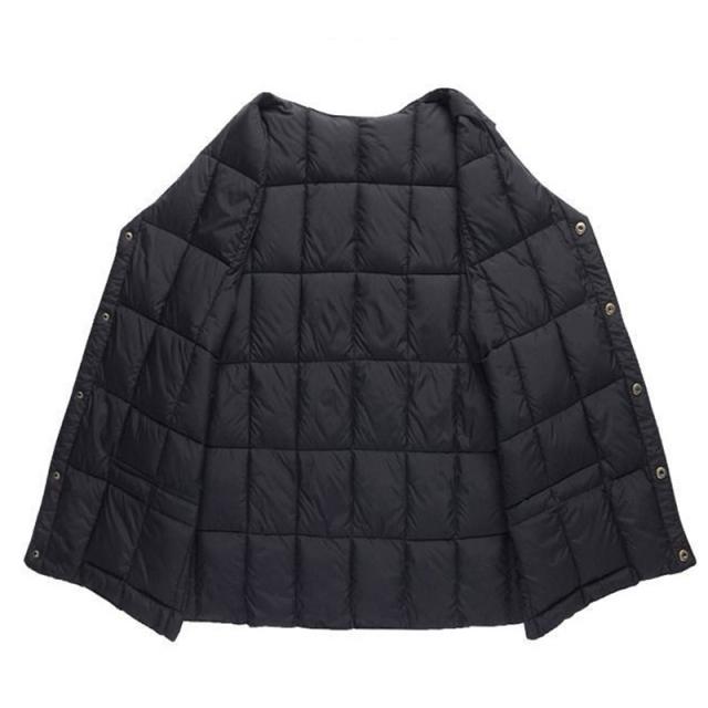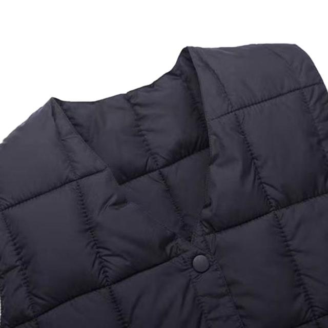 斜めキルトのシックなイメージ、グレードの高い素材を使用した、Vネックダウンベストです。 軽さや吸い付くような肌触りを追及しました。 コートの下に着用するのはもちろん、カジュアルシーンでTシャツ?シャツなどの上に気軽に羽織ることをお勧めします。 ご家庭での洗濯も可能です。