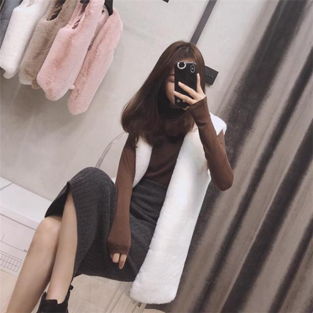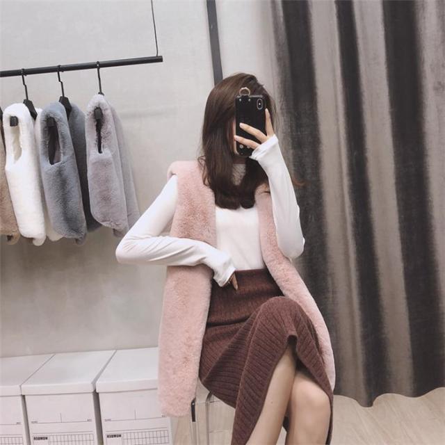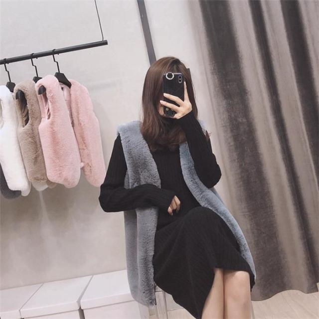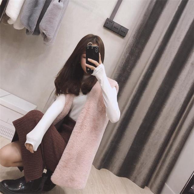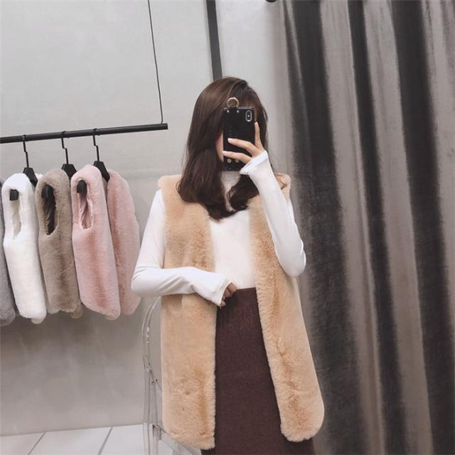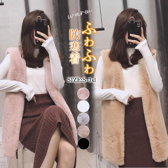 ベスト フェイクファーベストロング丈ベスト パッと目を惹くコーデの主役 ふわふわのフェイクファー 袖なし 無地 ドライブ フレンチカジュアル 秋 冬