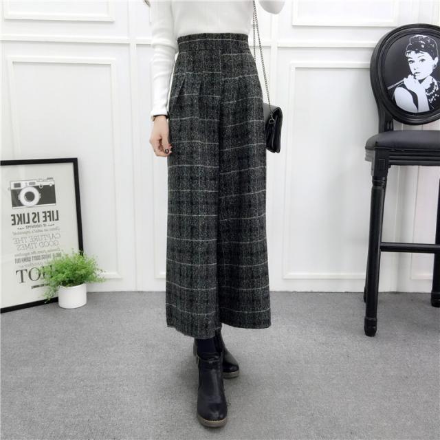 ウール混ハイウエストワイドパンツ ガウチョパンツ レディース スカーチョ ボトムス カジュアル チェック柄 体型カバー 大きいサイズ 送料無料