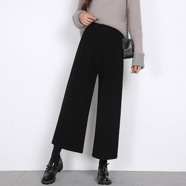 ワイドパンツ 秋 レディース ボトムス ガウチョパンツ ゆったり ラシャパンツ 9分丈 無地 体系カバー 秋冬新作 コーデ あったか 春秋冬 美脚ズボン 大きいサイズ