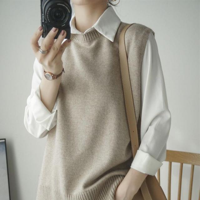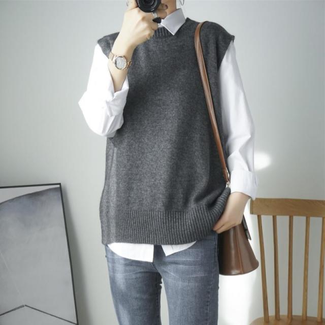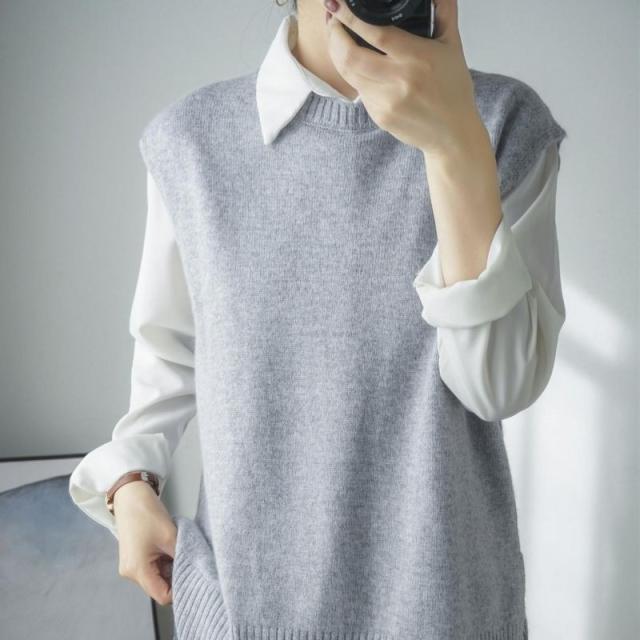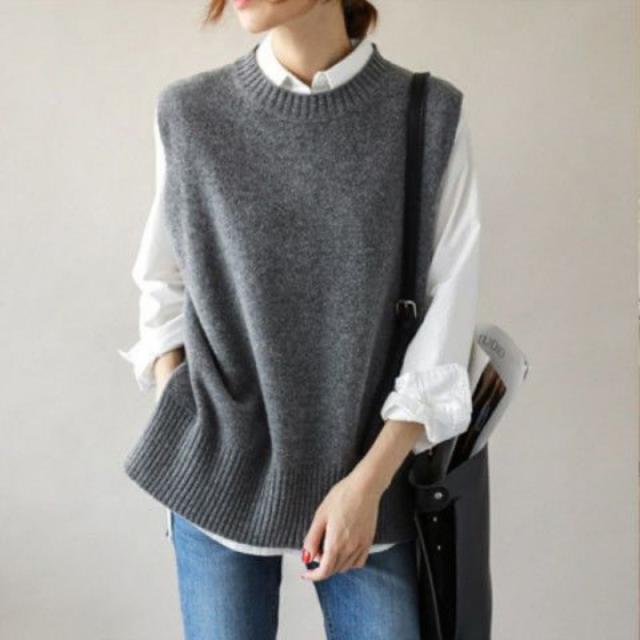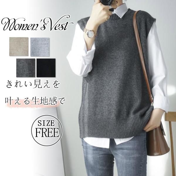 ベスト ラウンドネック ニットベスト レディース チョッキ トップス ベスト 薄手 ゆったり セーター 無地 重ね着 秋コーデ ノースリーブ おしゃれ 春服 秋服