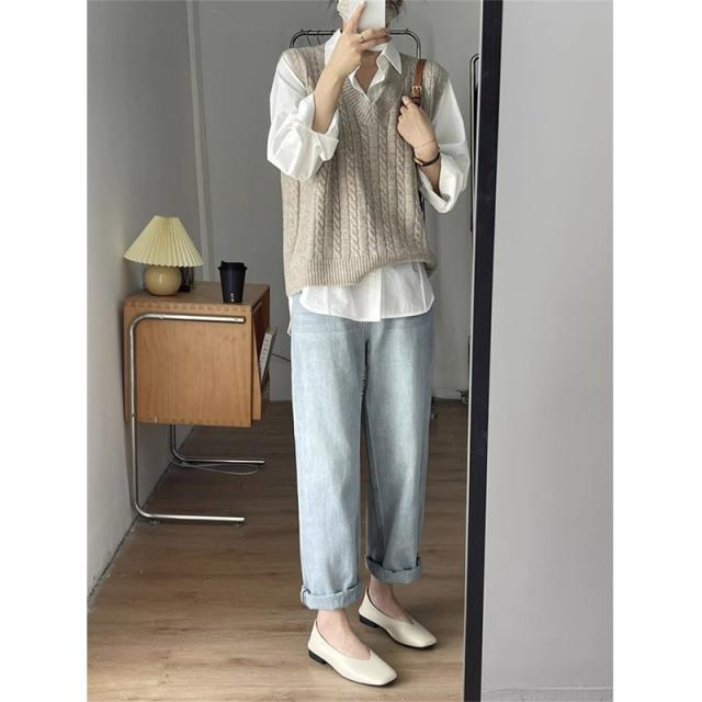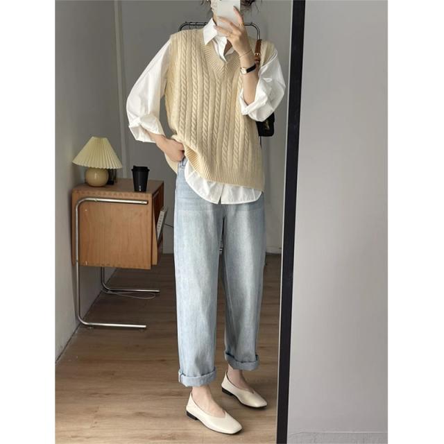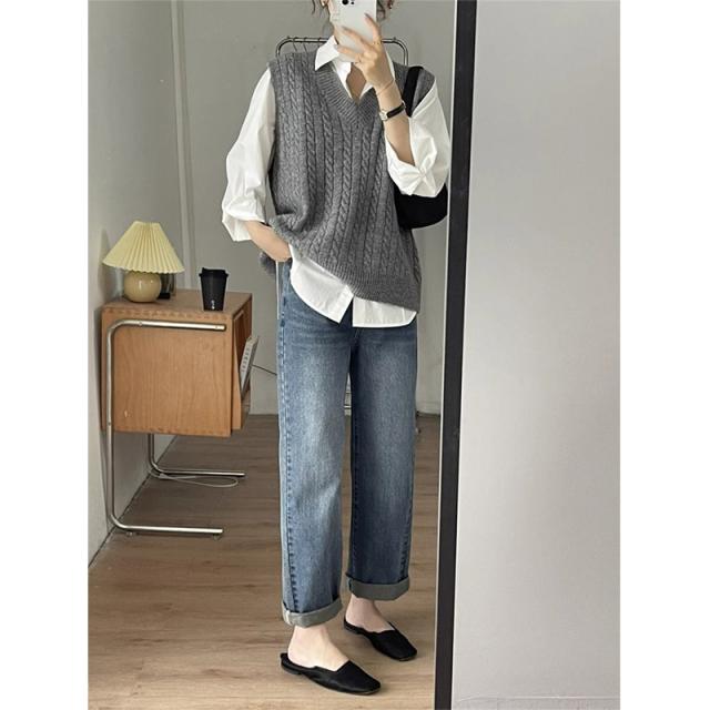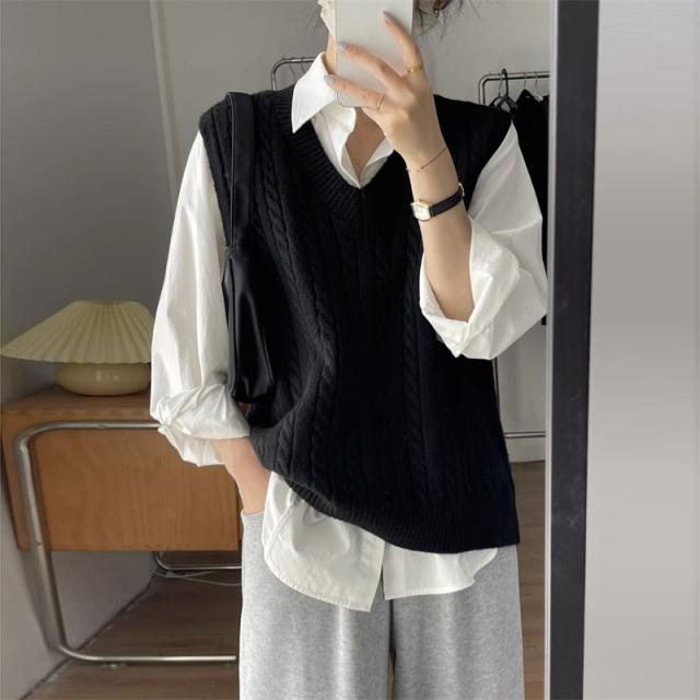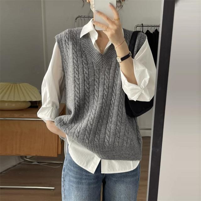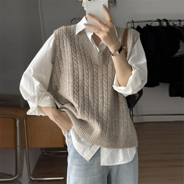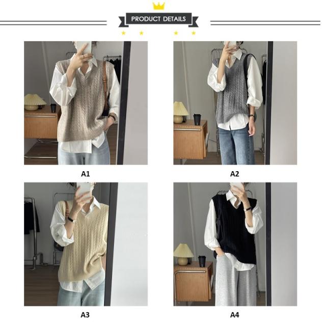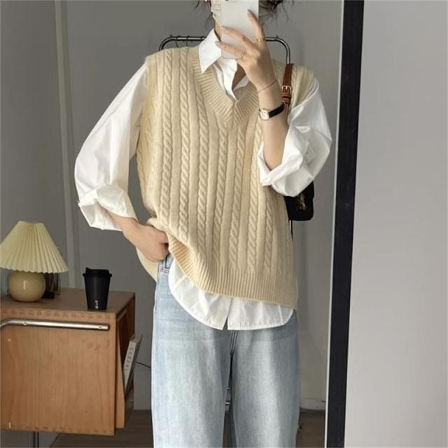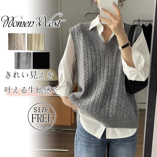 ベスト Vネック ニットベスト レディース チョッキ トップス ベスト薄手 ゆったり セーター ケーブル編み 重ね着 秋コーデ ノースリーブ おしゃれ