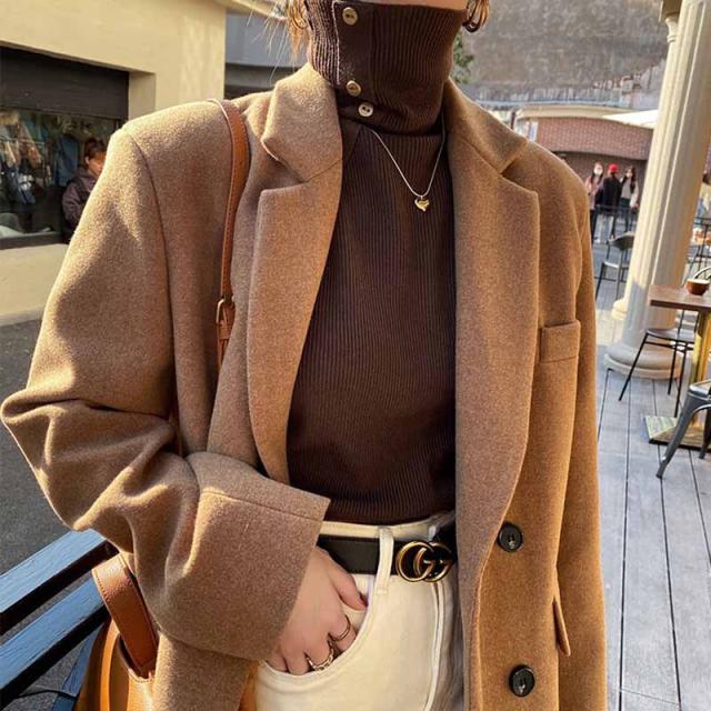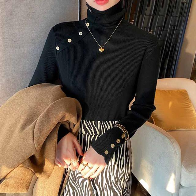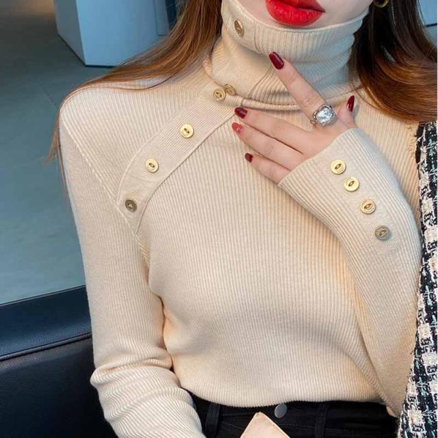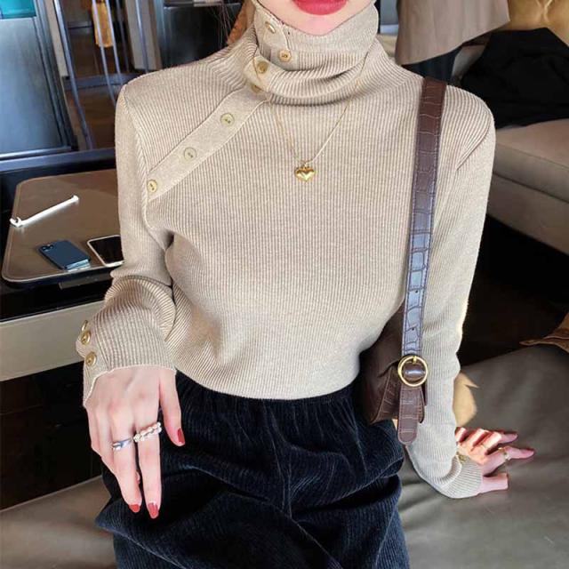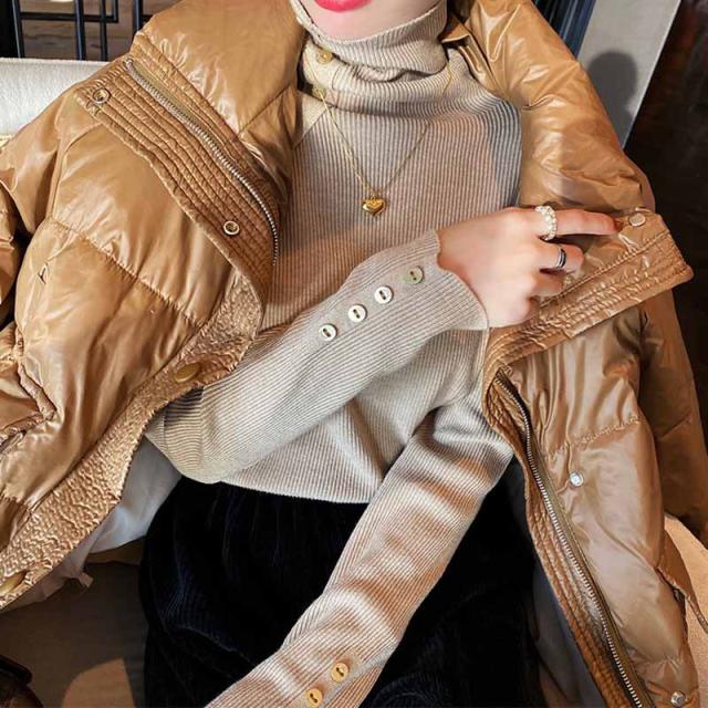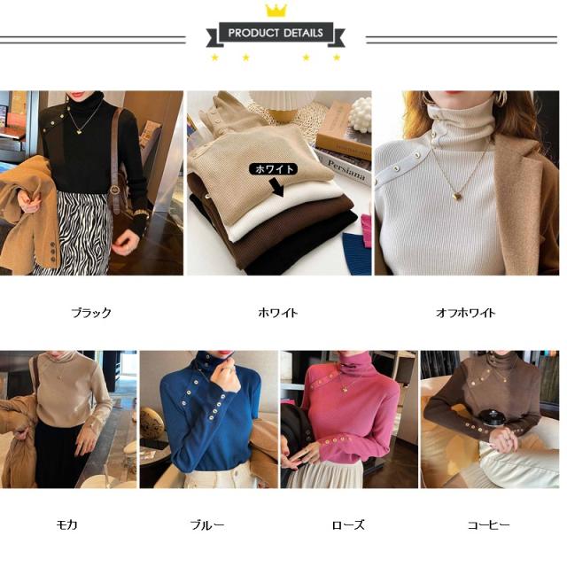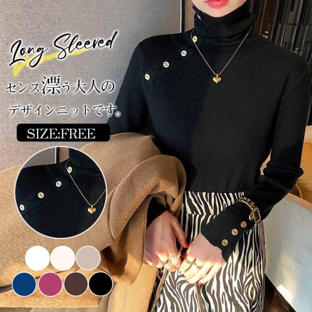 ニット リブ袖口ボタン タートルネック プルオーバー セーター レディース 秋 冬 ニット 長袖 薄手 ニット セーター クルーネック ニット チュニック