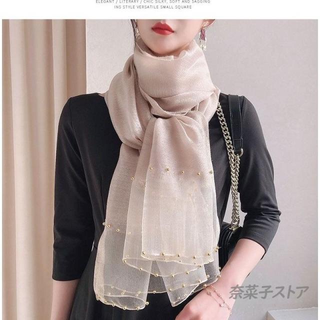 スカーフ シルク プレゼント 母の日 敬老の日 ギフト ビジュー アクセサリ マフラー 男女兼用 レディース ママ ストール 肩掛け 春 ポイント消化 送料無料