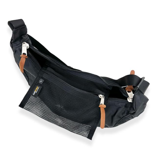 5L 【 メインA5サイズ(ダブルファスナー開閉) 】 吊り下げメッシュファスナーポケット(B7)×1 【 ショルダーベルト 】 長さ約57〜105cm 【 JANコード:ブラック(1041) 】 190207097894 |