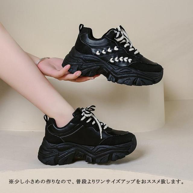 韓国風 ボリューム厚底スニーカー 黒カジュアル スポーティー 美脚 疲れにくい プラットフォーム 歩きやすい靴 春夏秋冬
