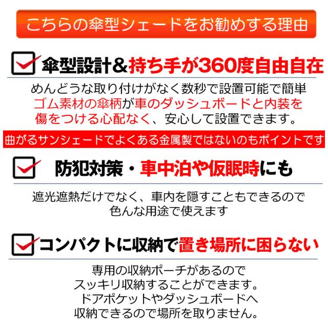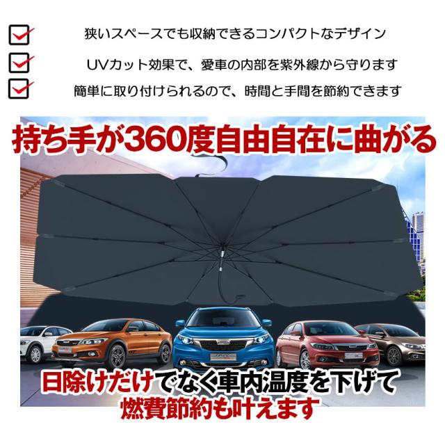 車 サンシェード フロント 傘型 傘型サンシェード 傘 車用サンシェード 曲がる 360度 傘式 遮光 遮熱 軽 軽自動車 フロントサンシェード 車用 日除け 日よけ 熱中症 対策 車内 断熱 紫外線カット 簡単 収納 便利 暑さ対策 収納ポーチ付