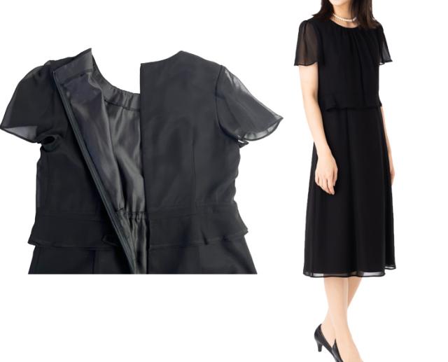 上身頃は重ね着風で落ち着いた華やかさを演出。