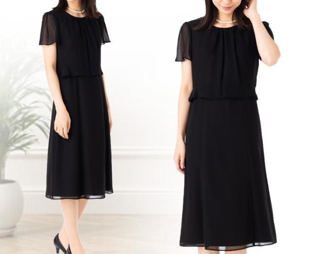 首元にギャザーを寄せたスッキリ表情見せの大人可愛いシフォンワンピース。