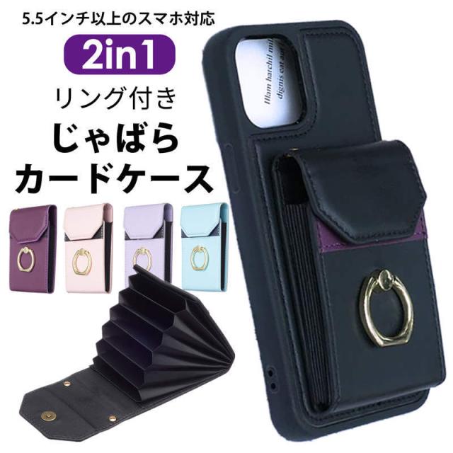 リング付きじゃばらカードケース【5.5インチ以上のスマホ対応】