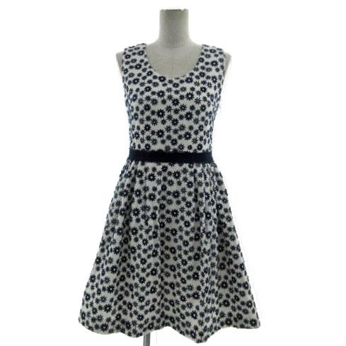 【中古】未使用品 チェスティ Chesty フラワー刺繍ノースリーブワンピース 6S536 ひざ丈 ホワイト 白 ネイビー 紺 0