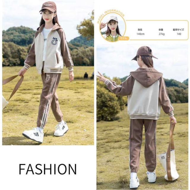 商品名:キッズスウェット ジャージセット 女の子 子供服 長袖 春服 ジャージ上下 カラー切替 2点セットフード付き パンツセット トップス 長パンツ セットアップ おしゃれ 上下セット 普段着 運動着 スポーツウェア カジュアル 大きいサイズ おしゃれ ファッション子ども ガールズ 小学生 春秋 春の遠足 こどもの日 お出かけ プレゼント 110cm 120cm 130cm 140cm 150cm 160cm