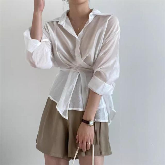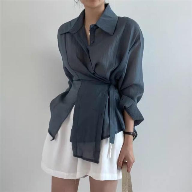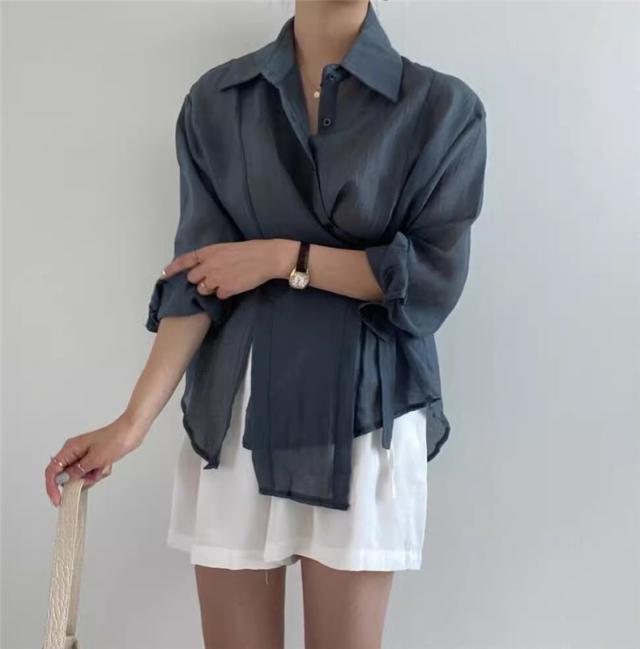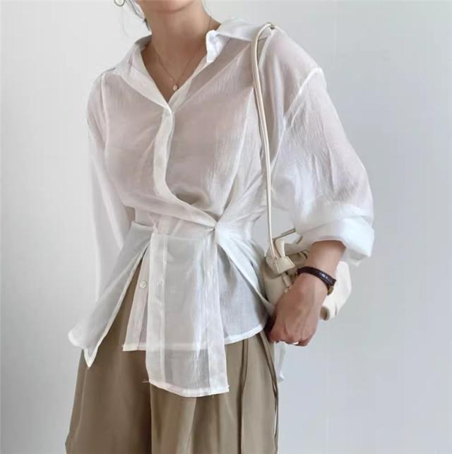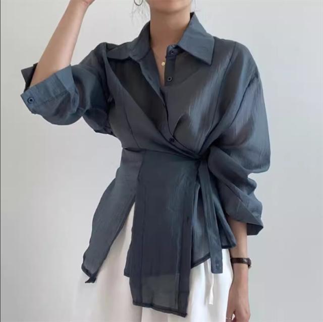 春トップス ブラウス シャツ レディース 長袖 パフスリーブ 体型カバー ボリュームスリーブ ゆったりと薄手 その日の気分で着回しパターン 自由自在◎