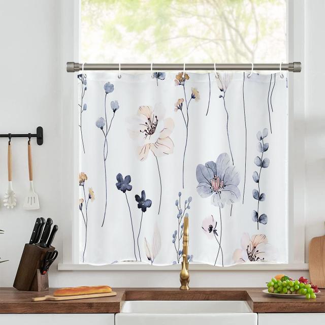 優れた品質 - 当社の小窓浴室カーテンは100%ポリエステル製でにおい無し、柔らかくて手触りよく、耐久性があり軽量な素材です。 重みのある裾が付いており、カーテンを所定の位置に保ち、吹き飛ばすのも防ぎ、フィット感がいいです。美しい花柄で、自然に近い気があります。