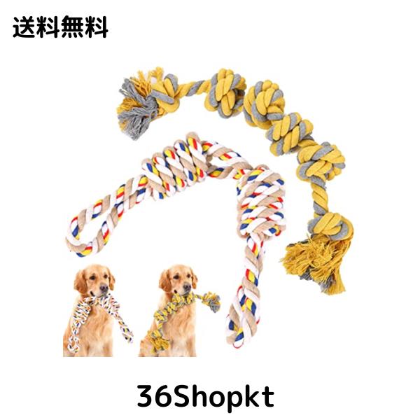 2pcs 犬おもちゃ 犬用噛むおもちゃ玩具 犬ロープおもちゃ 中型犬 大型犬 ペット用 丈夫 天然コットン 犬用ロープ玩具 ストレス解消 清潔